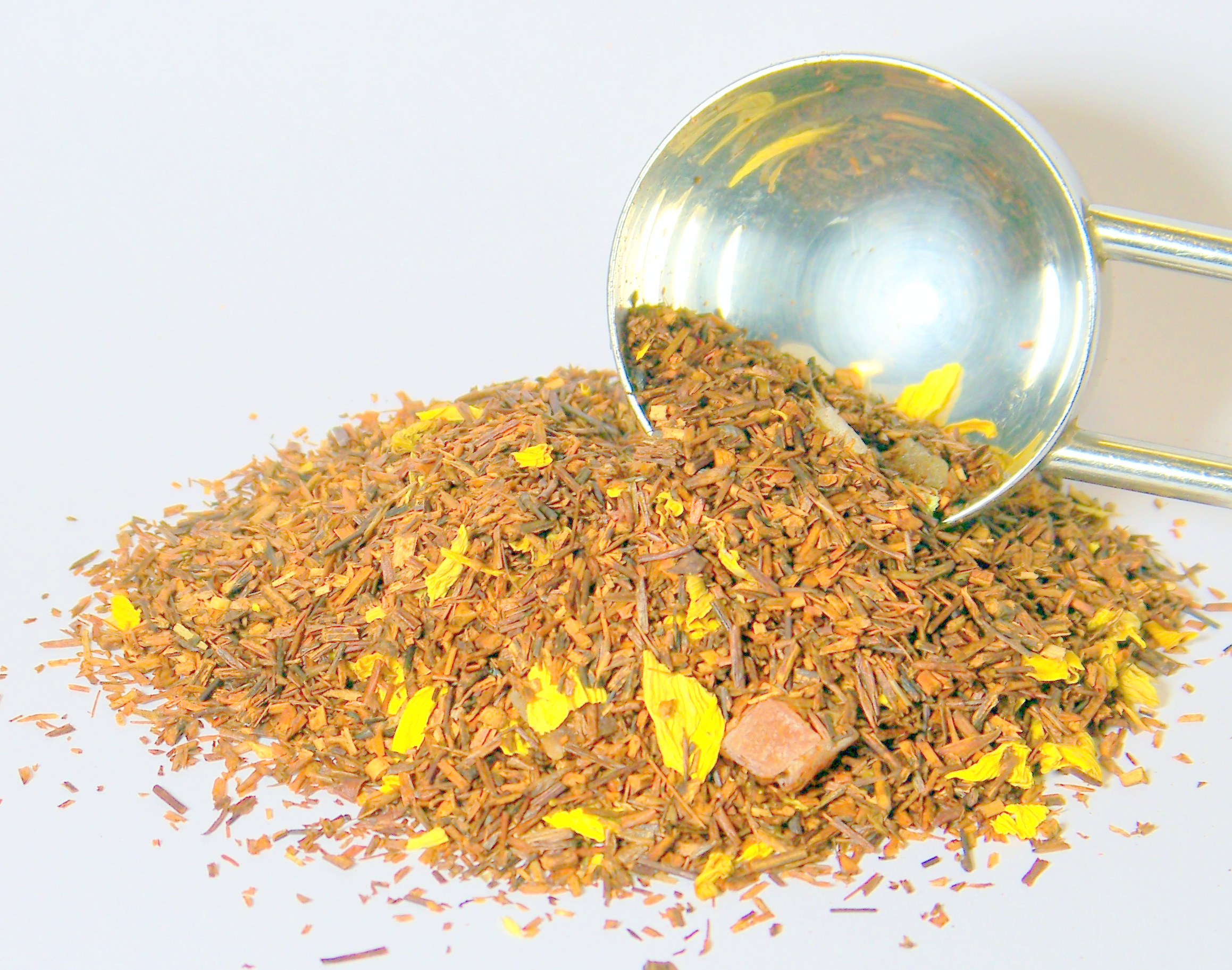 Die Aromen der Blut- und Saftorangen entfachen ein geradezu "fruchtiges" Geschmacksfeuer an Gaumen und Zunge. Eine attraktive neue Variante! Rotbusch Tee, Sandelholz, natürliches Blutorangen-Aroma.