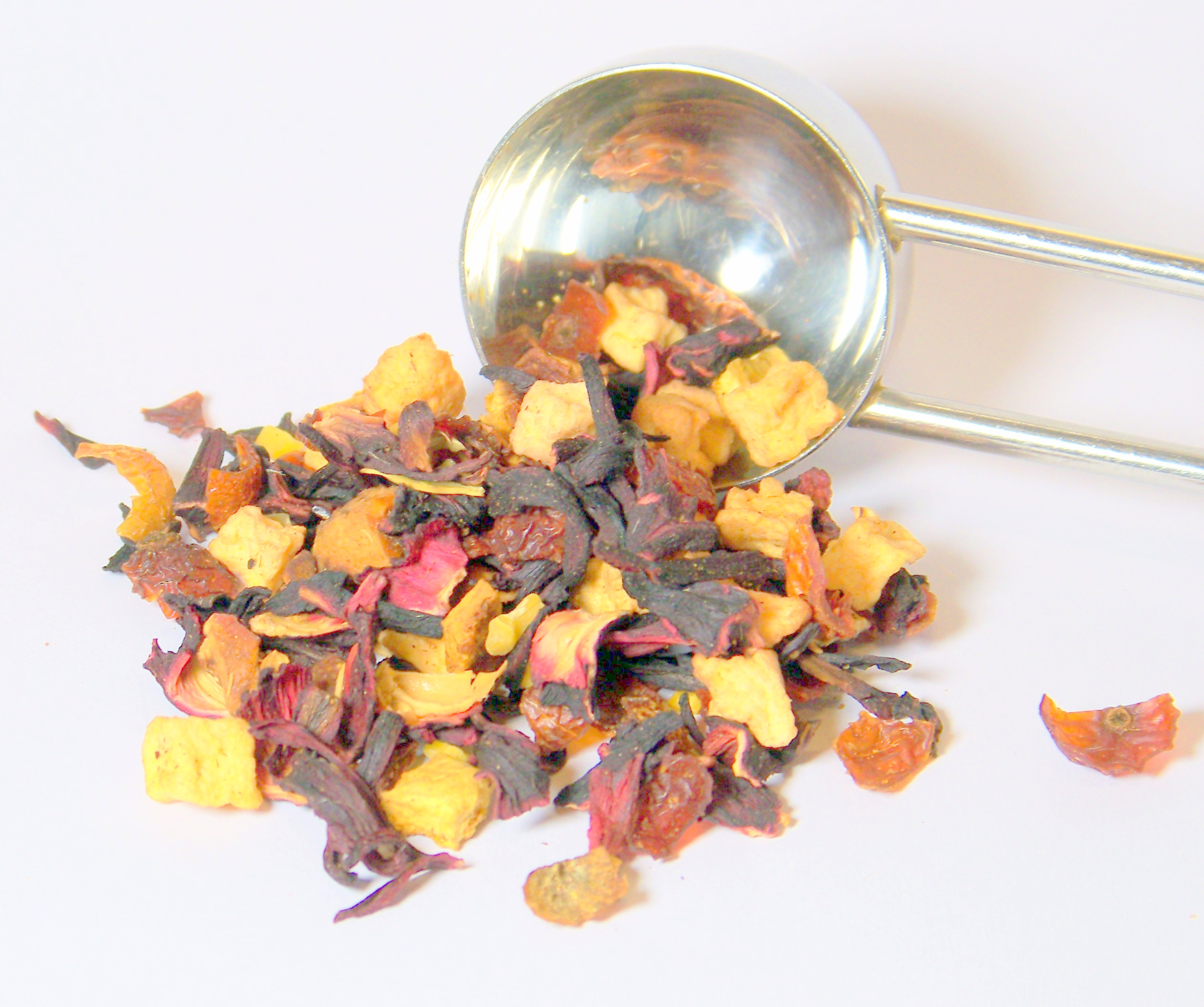 Eine Spitzenmischung mit verschiedenen Früchten und vollfruchtigen Aromen, Schwerpunkt Erdbeere. Hagebuttenschalen, Hibiskusblüten, Holunderbeeren, Erdbeer-, Maracuja-, Apfel-, Kiwi- und Himbeerstücke, Sonnenblumenblüten, Rosenblüten und Kornblumen.