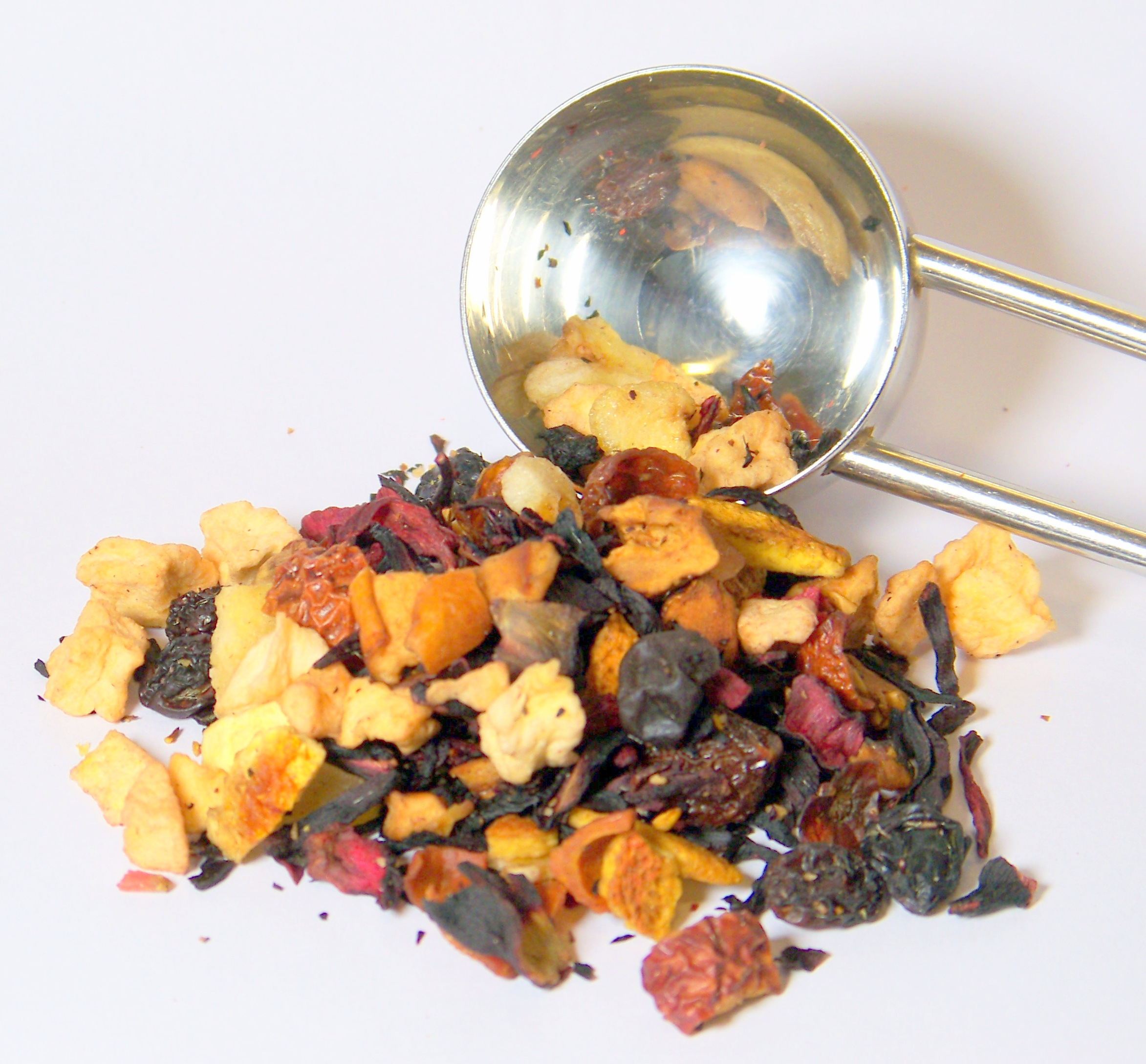 Eine Früchtetee-Mischung der Extraklasse. Papayawürfel, Hibiskusblüten, Korinthen, rote und schwarze Johannisbeeren, Heidelbeeren, Fliederbeeren, Himbeer- und Erdbeerstücke.