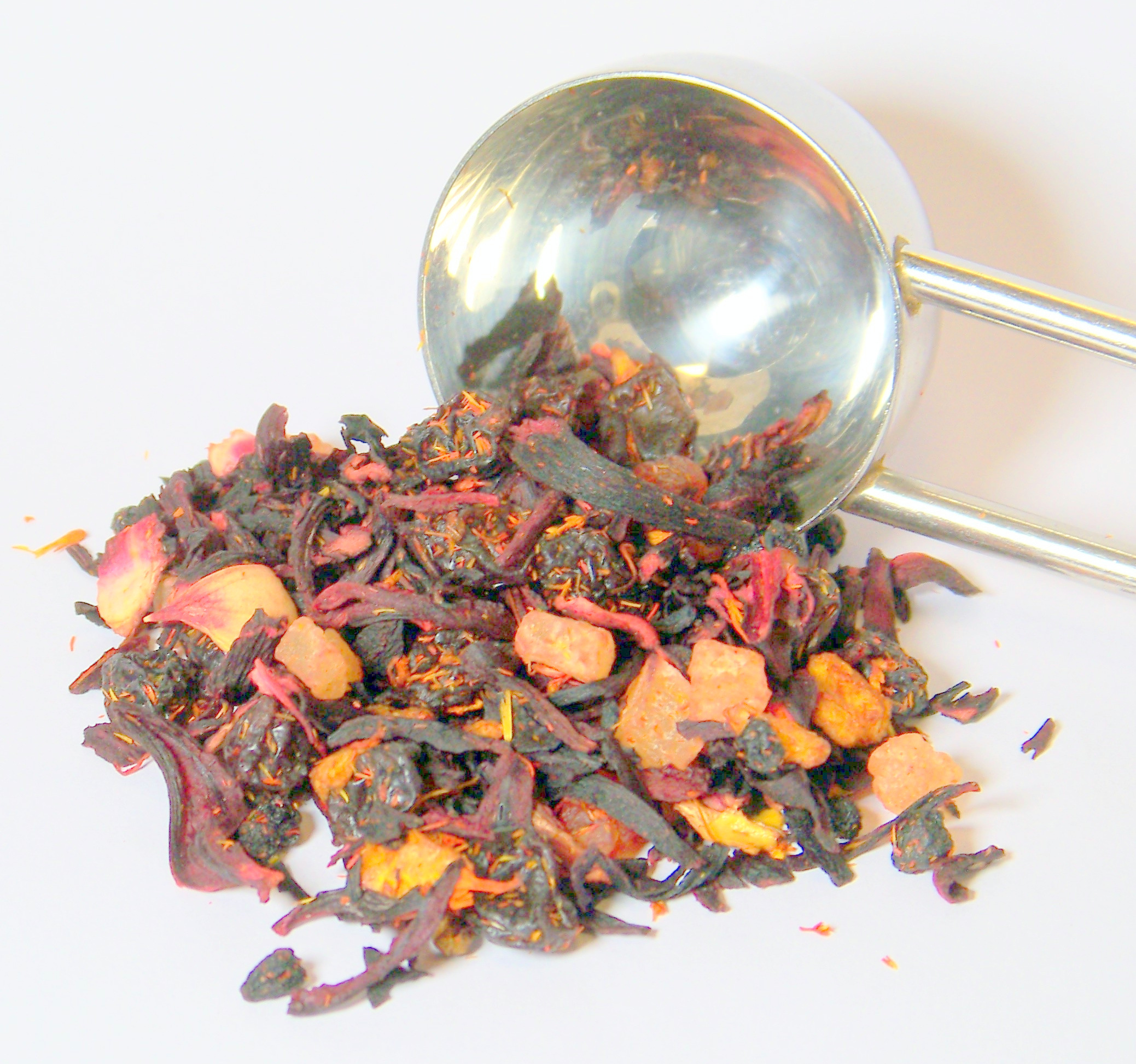 Die ausgewogene Komposition der erlesenen Früchte wird auch Ihnen gefallen, denn Multifrucht schmeckt so wie frisch aus dem Obstgarten geerntet. Hibiscusblüten, Holunderbeeren, Korinthen, Hagebuttenschalen, Orangen-, Papaya-, Ananas- und Mangostücke, Färberdisteln und mit Mango/Maracuja Geschmack.